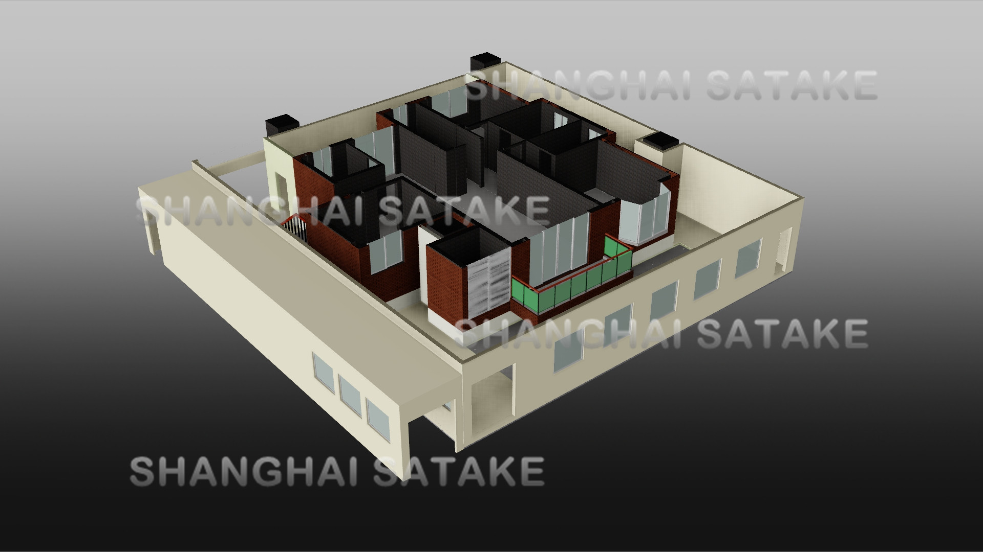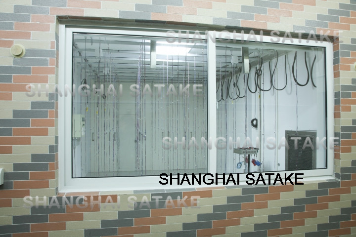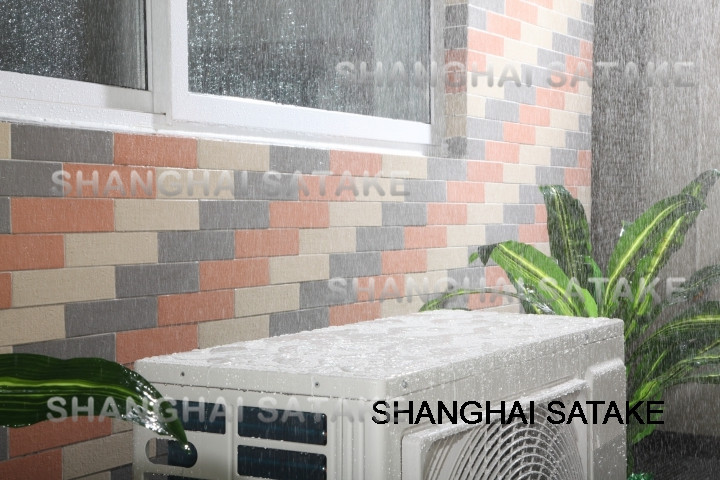 本试验室用于模拟空调的实际使用环境和气候条件,以评价和研究空调在特定条件下的舒适性、节能性、耐候性和实用性。本试验室由模拟民居的内室和模拟自然环境的外室构成。内室可以分割为多居室,且房间面积可调,以满足不同规格空调的试验,其建筑结构的热力学特性接近典型的民用建筑。外室可模拟温度、湿度、日照、刮风、降雨和降雪等各种自然环境条件。