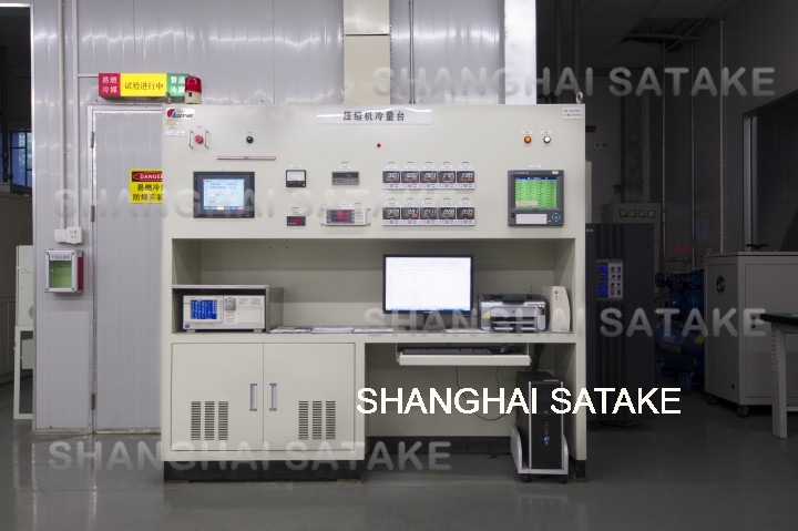 试验台符合ISO 917和GB/T 5773标准,通常X方法采用第二制冷剂量热器法,Y方法采用制冷剂液体流量计法;也可采用标准规定的其他方法的组合。试验台除可以测量压缩机的能力、功率、COP、电流、转速、变频器输入功率、绕组温升外,还可以进行GB/T 15765中规定的低电压启动试验和连续过载试验以及最终断开试验。试验台的工位数、冷媒种类、能力范围可以根据用户需求定制。试验台采用本公司多项技术,采用变能力制冷机组可以大幅节约能源消耗,采用吸气冷却技术可以实现低吸气过热度工况的控制,采用OCR测控技术可以在线测量和控制压缩机的吐油率,大幅提高试验效率。此外,还可以提供新冷媒R290、R32、R417或CO2的测试功能。